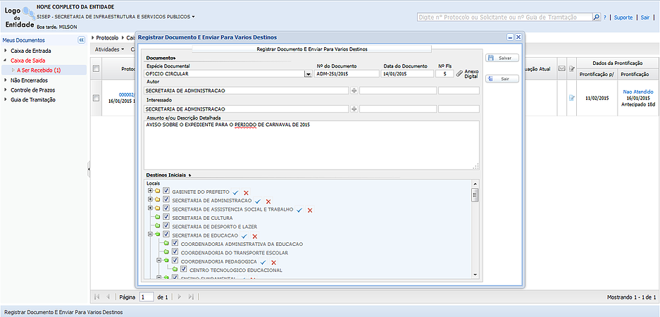 • Registro de documentos com envio para vários destinos